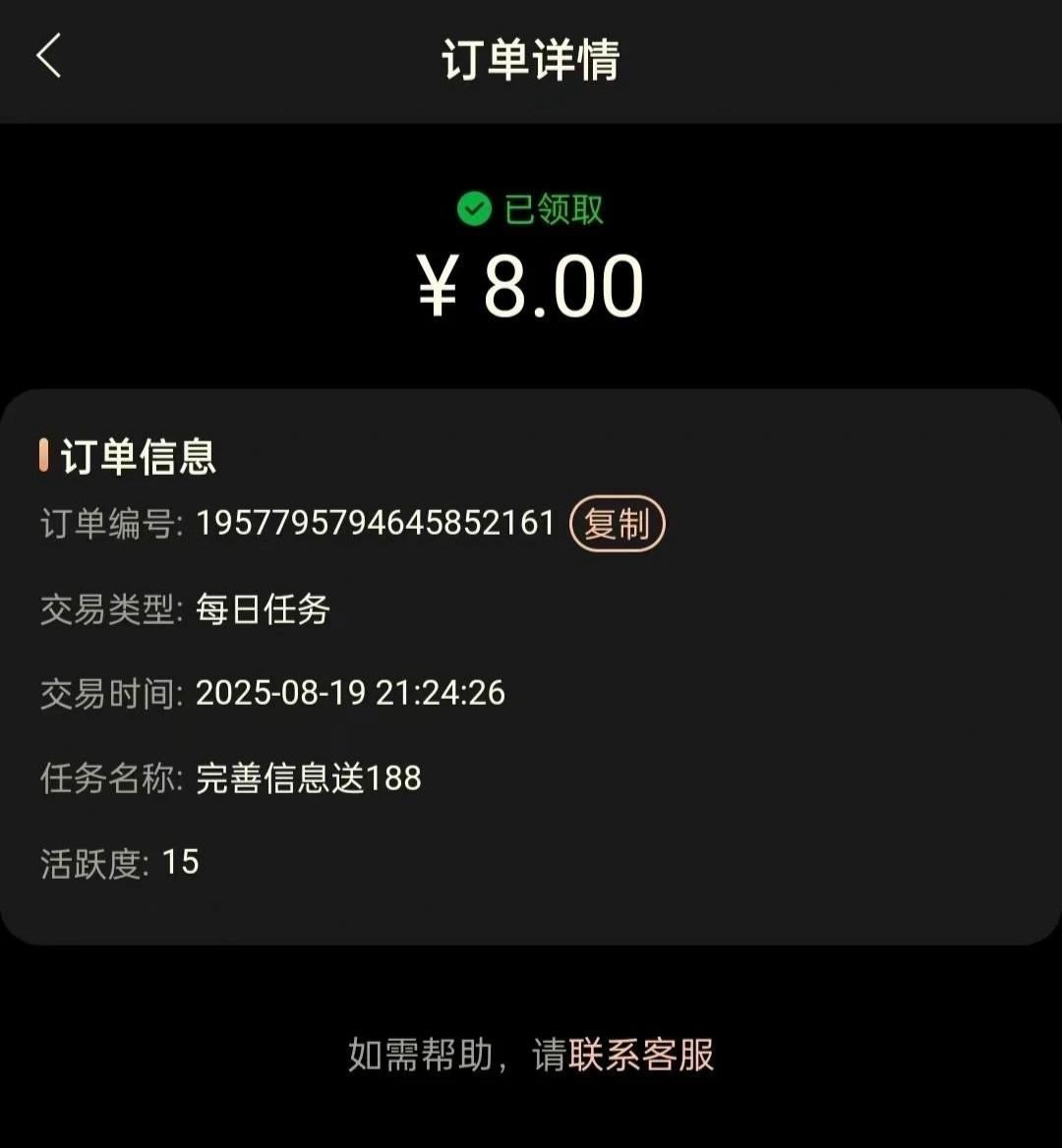 注册绑定银行卡,刷新每日任务送8,领不到可能是黄了,不知道限不限制游戏,具体自测,仅限白嫖禁止充值。